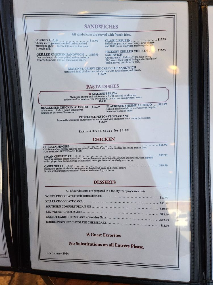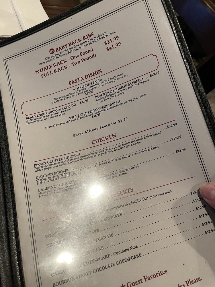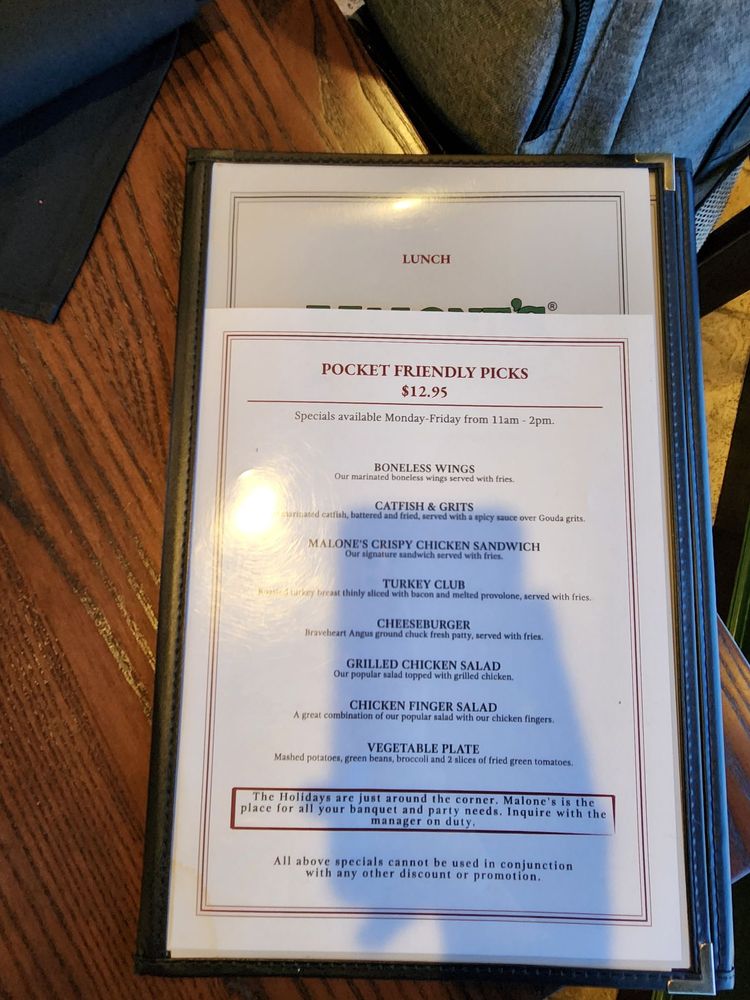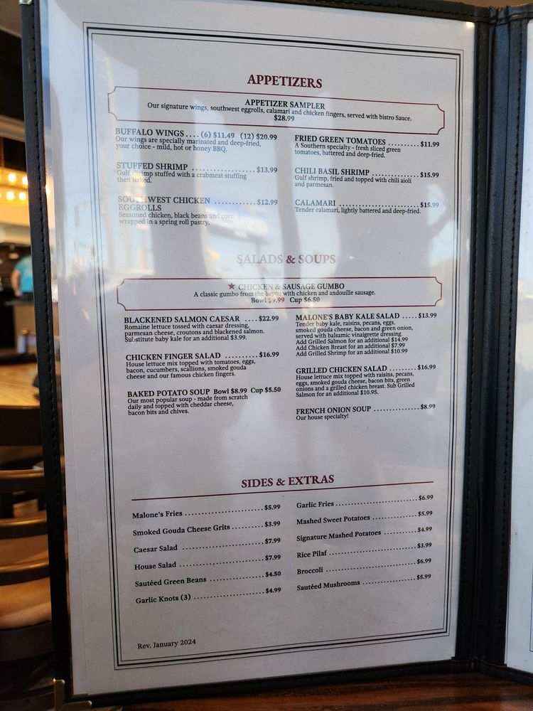 Malone's Steak & Seafood Menu