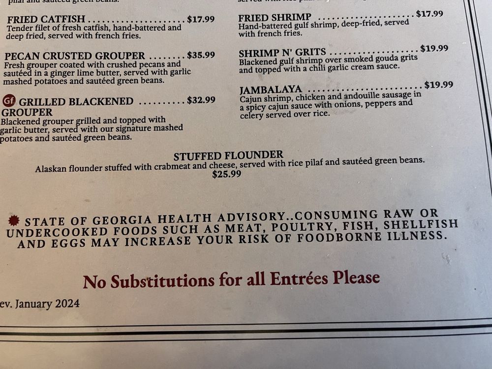 Fresh Grouper coated with crushed pecans and sauteed in a ginger lime butter, served with garlic mashed potatoes and sauteed green beans.